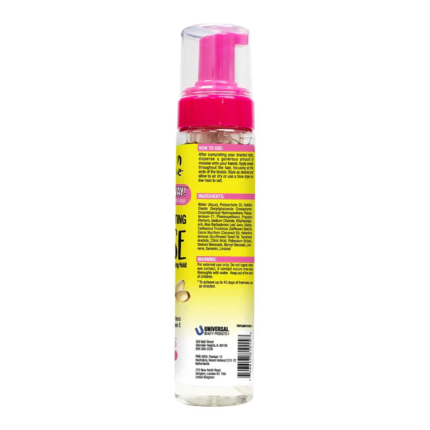 Long lasting setting, molding & holding mousse to keep braids looking fresh & frizz free longer.
